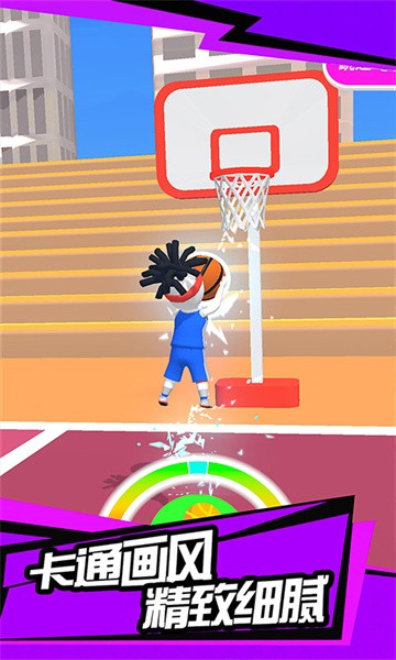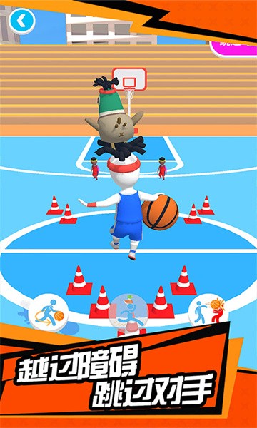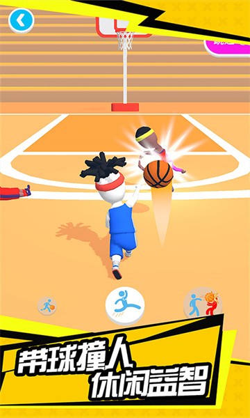 《决战球坛》是一款体育游戏,单手运球、巧妙避开对手纵身一跃完美扣篮获取胜利!里面有三分球以及扣篮等操作。还有更多的玩法等着你们来打开!