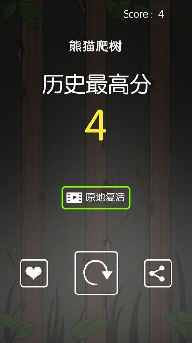 熊猫爬树手机游戏来看看你能积累多少分吧!这是一个趣味性满满的手速挑战小游戏,你需要让熊猫在三根树干中不断左右移动并击落虫子,要是不能及时击落那么游戏将会失败,不过可以重新开始挑战。