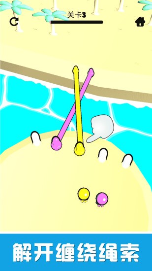 尽力解开所有的结,游戏玩法很简单,十分适合用来打发时间。