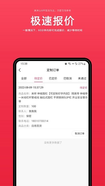 【极速报价】用户询价后,我们会在60分钟内给出报价,这样可以节省彼此的时间,让用户尽早做出选择;