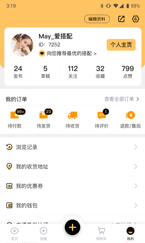2、进入我的个人界面进行注册登录,打开首页,查看诸多风格搭配信息