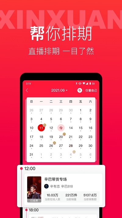 辛选帮软件不仅一款简单的网购平台,还支持多种方式带货,提供丰富的商品选购,精选优质推荐,严控品质,一流货源,可以自由进货,还可以通加入直播计划进行带货,进度实时追踪,一手掌握,直播排期一目了然,购物更加轻松简单!