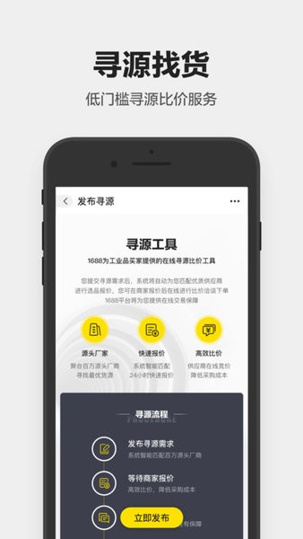 1688工业品是阿里巴巴旗下一款专注于工业品寻源采购的手机应用。依托1688平台,面向工业品买家,力求打造全、专、快、好的工业品采购体验。