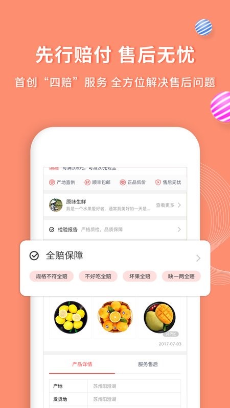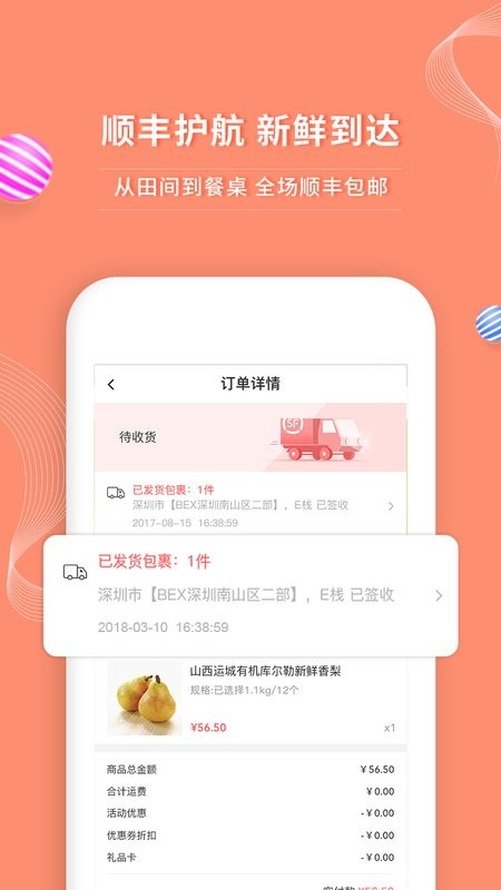 站内所有商品经原产地直采后,全部顺丰包邮,让消费者享受到新鲜、安心的服务。