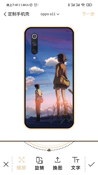 6、便捷丰富的定制设计工具,该编辑设计页面有缩放、旋转、换图以及文字多种工具;