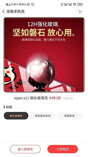 4、多种不同的定制材质选择,其中有钢化玻璃壳、黑色磨砂软壳以及透明软壳等;