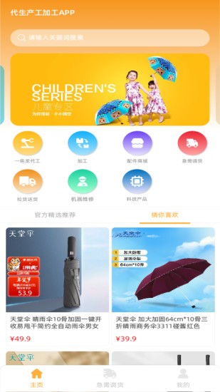 伞城,专为雨伞加工行业打造的配件商城软件,在这里用户可以轻松搜索到海量配件生产厂家信息,及时获取上下游组装产品,软件提供成品伞的线上销售服务,智能仓储物流系统管理更加方便,有需要的用户可以下载使用!