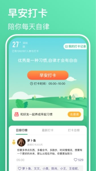 最让我觉得贴心的是它支持打卡功能,可以直接生成便签分享到朋友圈,这样既能激励自己也能吸引更多好友关注。app的界面设计也很有创意,海报和二维码自定义的功能更是加分不少!总的来说,这个app不仅是个早安语录库,更是一个综合的生活记录和分享平台,特别适合喜欢写日记、发朋友圈的人。每天早晨打开它,感觉生活都会变得更有动力呢!