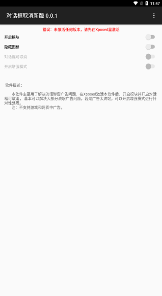 3.对话框取消模块是个“纯净”的插件,无需ROOT权限。