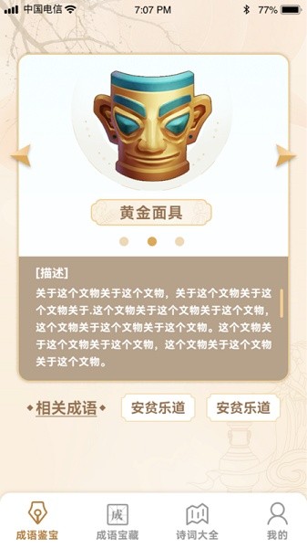 这个软件最大的优点就是把学习变得轻松又有趣。它里面有超多的成语和诗词,想学什么都能找到。而且还能边玩边学,不知不觉就记住了不少成语。我觉得特别适合那些对传统文化感兴趣的人,比如我就是这样的人!通过这个游戏,不仅提升了语言表达能力,还增长了见识,真的太棒了!如果你也想学习成语或者了解文物知识,这个软件绝对是个不错的选择,强烈推荐!