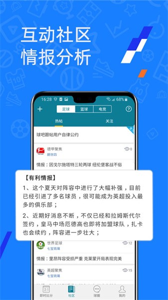 2. 球迷交流社区,各路大神讨论比赛动向,一起分享赛事喜悦;