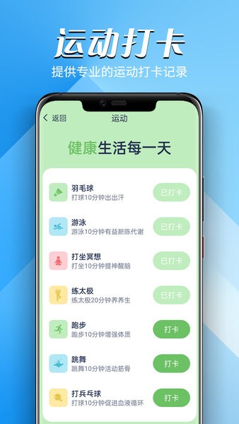 -任务打卡:简易快捷的追踪日常习惯,通过运动、喝水等任务帮助你轻松养成良好的健康习惯。