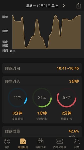 4.只要您睡觉的时候就可以开启睡眠监测,app就会检测您的睡眠情况