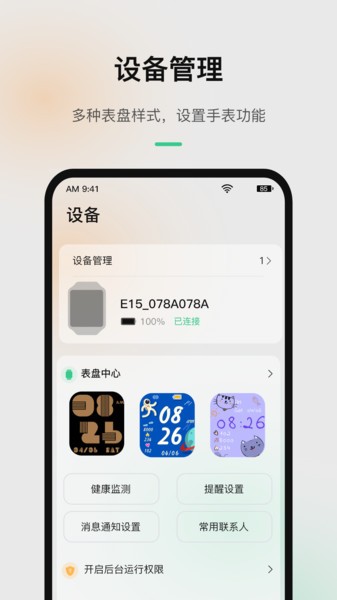 我最喜欢它的地方是操作简单又智能,连接设备不用花流量,蓝牙一开就能搞定。而且界面设计也很贴心,支持多种表盘样式和颜色切换,完全可以根据自己的喜好来调整。对于健身小白来说,这个App还提供了专业的指导,如果长时间不运动还会提醒你加强锻炼,真的很暖心。