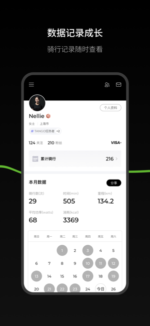 1、实时记录并反馈您在tango bike上的运动数据,帮助你细致地了解运动信息