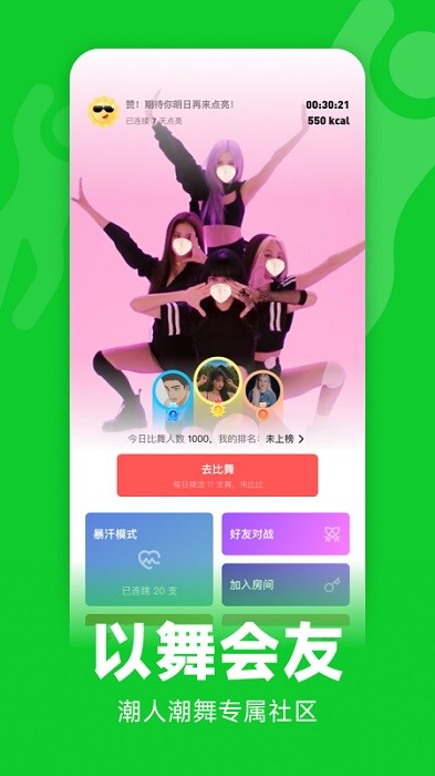 记录每日消耗,分享好友互相鼓励,跳舞从来都是一件快乐的事情;