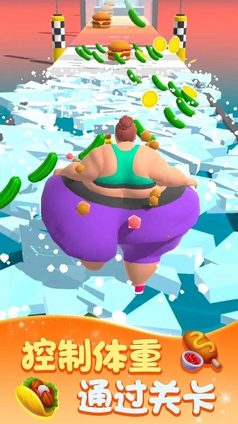 3.在赛道上可以突破重重的障碍物,需要控制好角色的体重,让角色的肌肉更加壮实。