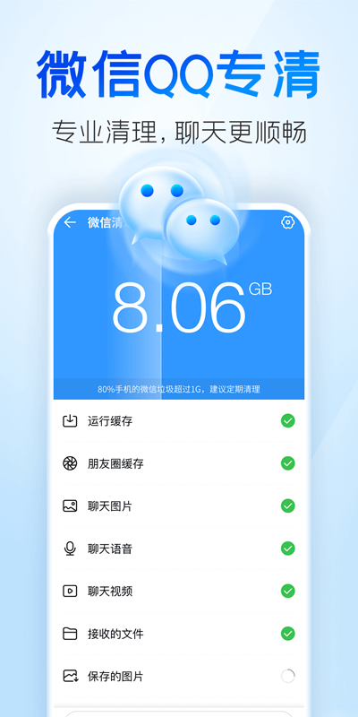 【微信qq清理】专业识别聊天缓存,释放大量空间。