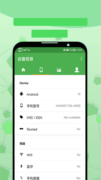 2、可以了解手机一些设备信息,比如电池类型,蓝牙,网络,内存,传感器