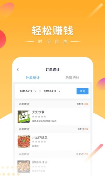 转为骑手打造的订单信息,即时查询到店铺统计单数。