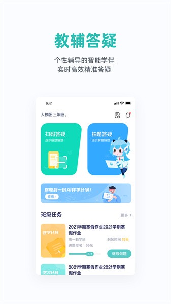 Al任务学主要基于学校教学整体安排,面向学生假期制定高效个性化的学习方案,通过开假测、预习、复习、收心测四大环节,设计分层假期个性化学案,基于诊断的薄弱项,制定专项复习计划;依据新学期初步教学计划,制定衔接预习计划、让学生在假期实现重点突破,全面提升。老师实时掌握学情数据。为下一步的分层教学提供教学依据。