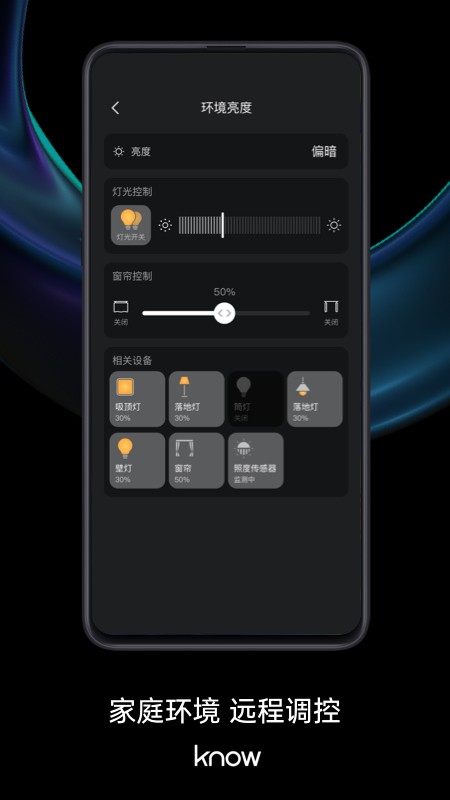 用户可以随时调节环境的亮度,及时操控相应环境的灯光,舒适的使用;