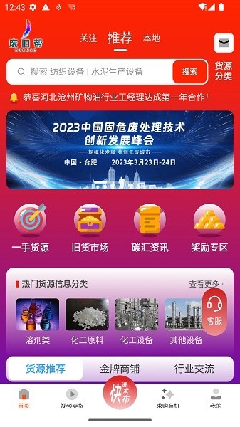 废旧帮平台是提供二手废旧品回收交易服务的应用软件,带来一手货源,提供旧货市场、碳汇资讯、奖励专区服务,热门资源信息分类,随你选择,精选推荐,视频卖货,支持行业交流,在线求购,把握市场机遇,随时随地交易方便简单!
