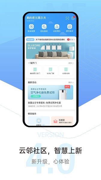 云邻社区是一款为美的置业业主打造的应用,提供丰富的线上物业服务、智能化的社区及家居控制与管理功能、有趣的社区活动资讯和优惠的社区商城,让业主智享美好生活。
