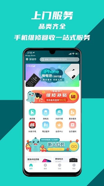 维修品类丰富涵盖主流手机品牌型号,换屏幕、换电池、主板维修一网打尽
