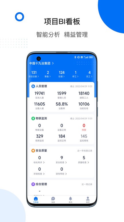 现场管理:实现轻松管人、管物、管事,质量、安全、人机材重点管,多方高效协同。