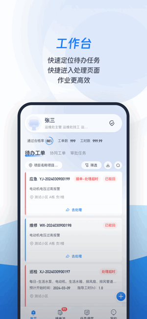 1、聚合管理待处理的工单,用户可在待办工单中心选择处理工单。