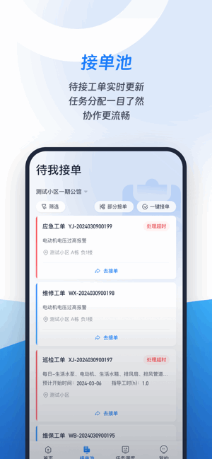 拥有简单易用的接单流程可以支持运维人员一键接单获取任务;