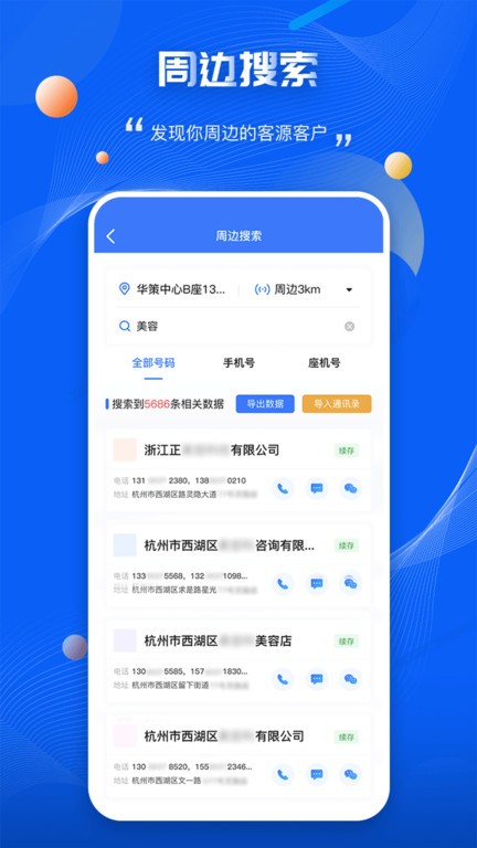 同城客源:一键导出同城各市黄金号段,支持一键导入通讯录,客源管理好帮手,删除导出无压力;