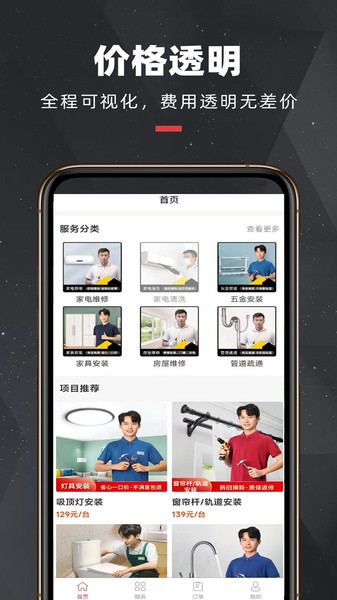 拉风快修官方版是一款提供家庭生活便利的上门服务软件,集家电维修、家政保洁、家具安装等功能为一体,根据需要自由选择,在线下单,快速响应,随叫随到,轻松上门,解决大家的需求,价格透明,全程保障,免费预约,十分方便!