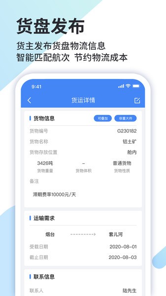 货主发布货盘物流信息,可和船东的航次智能匹配,帮助货主无缝对接、减少中间环节,节约物流成本。