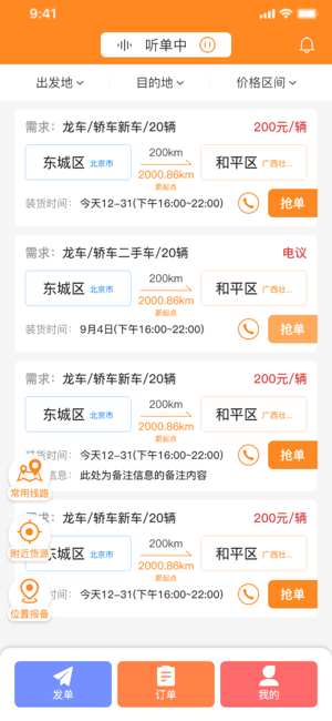 龙运天下承运版是专门为货运司机提供的运输管理出行软件,海量订单随你接单,智能听单,在线发单,订单详情明细一目了然,自由查看,货源详情自由了解,及时处理,轻松运输,运输状态实时记录跟踪,管理方便,操作简单!