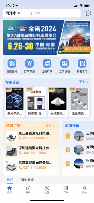 这个聚光点维保app就像是给激光设备的维修保养服务找了一个超级方便的一站式平台。不管是需要维修、买配件还是讨论行业知识,都能在这个平台上找到对应的服务。最让我觉得方便的是它能快速匹配附近的师傅,很多时候问题当天就能解决,完全不用等很久。