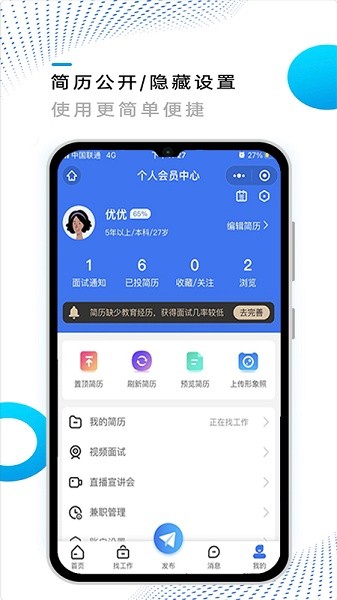 我用过这个App,感觉挺不错的。界面设计挺新的,功能也很齐全。你可以通过“聊天找工作、挑老板”这种方式直接沟通,还可以设置简历的公开和隐藏,操作起来很方便。特别是它的智能匹配推荐功能,会根据你的需求精准推送职位信息,效率很高。