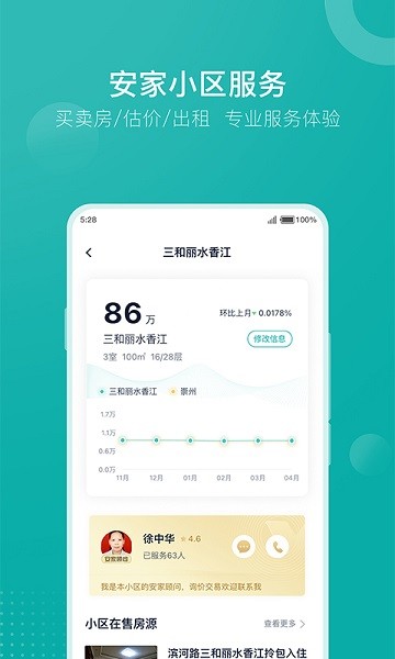 用户在软件中能够看到各个小区的安家顾问信息,快速和顾问进行联系沟通;