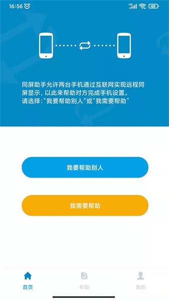手机同屏助手允许两台手机通过互联网实现远程同屏显示,以此来帮助对方完成手机设置。