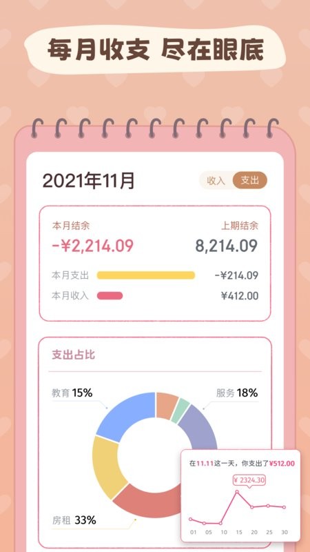 揭秘!每个月挣的钱都去哪了?每一笔收入,每一笔开支,不论大小,恋恋记账都记得!
