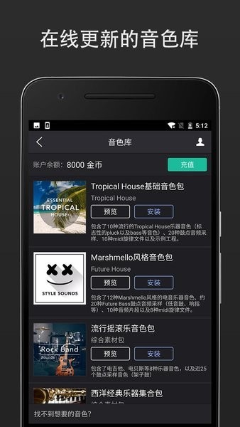 本软件拥有简洁专业的编曲功能。你可以在定期更新的音色库中下载各种乐器及音色,包括古典乐器、民族乐器、电子乐器、鼓、钢琴、吉他、音频素材....等等,并将其用于你的创作中。不管你是专业的音乐人,还是业余的音乐爱好者,都可以随时随地轻松使用这款软件制作出你心中的音乐。