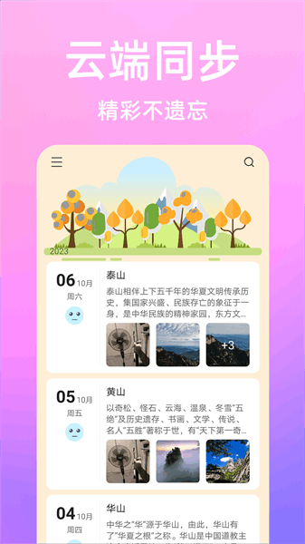 -- 云同步:日记自动同步云端,支持多设备同步,避免日记丢失。