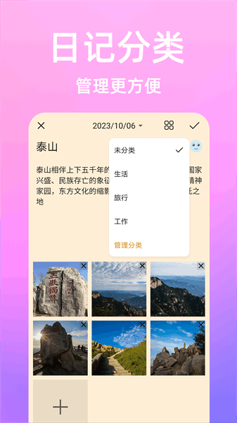 -- 日记分类:自定义软件分类,更高效的查看和管理日记