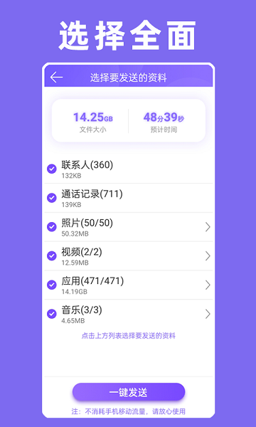 对于我这种懒人来说,一键换机的功能简直太贴心了。旧手机扫个码就能传数据,新手机安装app后直接接收,整个过程毫无压力。不管是什么品牌或者系统版本,都能完美兼容,真的很省心。