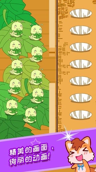 1.简单的游戏画面,可爱的蚕宝宝形象,让你在游戏中感受最快乐的游戏体验