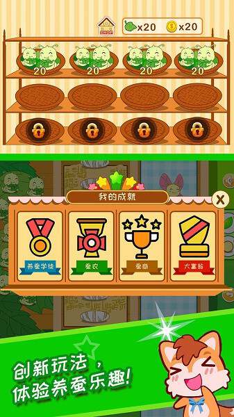 丰富的成就等级,让你在每分每秒都有奋斗的目标,为了你的蚕宝宝农场更好的生存下去,努力奋斗吧!