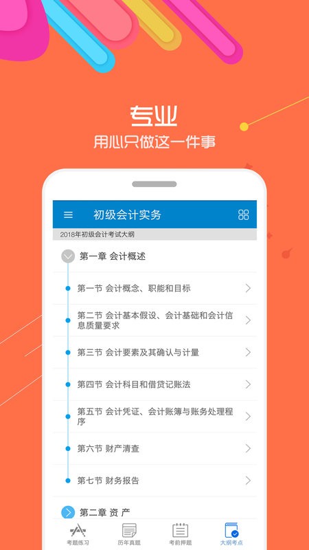 针对会计考试学习软件,针对章节进行细致划分。