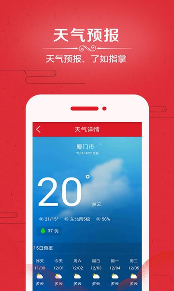 支持查看未来15天的天气情况,为出行安排提供帮助;