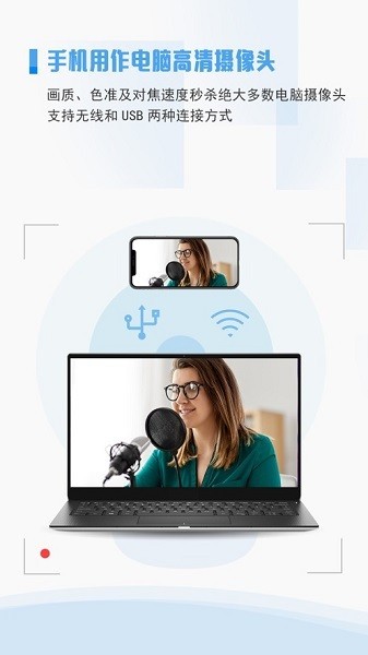 画质、色准及对焦速度秒杀绝大多数电脑摄像头,支持无线和usb两种连接方式